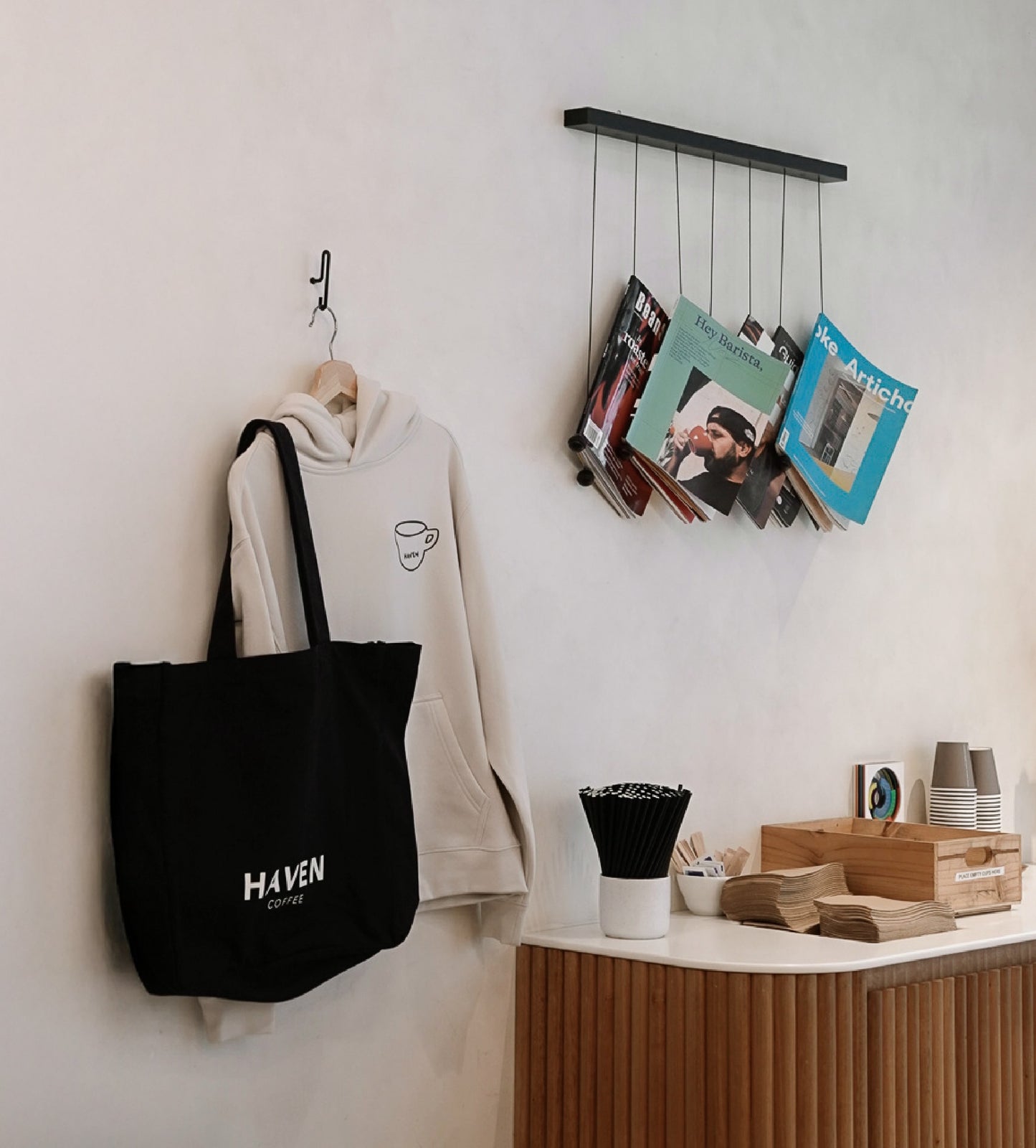 The Haven Tote is made from heavy duty canvas featuring a structured design. Inside you’ll find a small pocket at the top for keys or essentials, as well as two deep pockets perfect for bottles, umbrellas or whatever you need to stay upright. Durable, functional and designed for everyday.